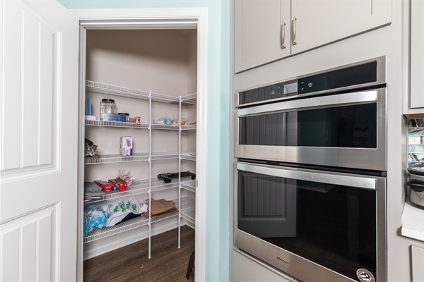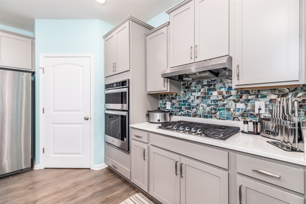 Welcome to my fully loaded, brand new kitchen! Featuring stainless steel appliances, a double oven, gas cooktop, sleek cabinets, range hood, toaster, and a spacious walk-in pantry. It's a chef