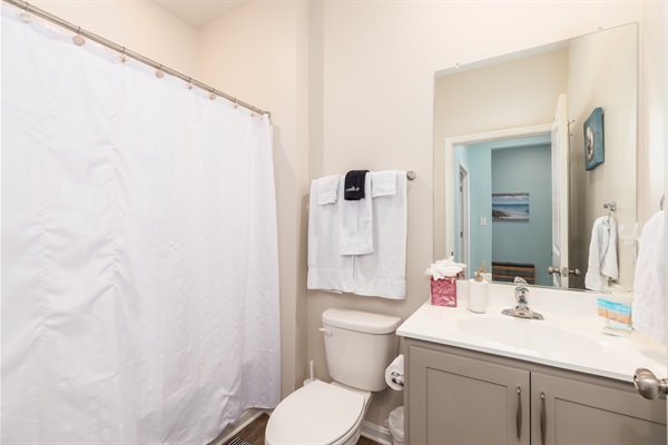 Explore our second bathroom—a harmonious blend of a shower and tub combo. It's a space for rejuvenating showers and relaxing baths, offering the best of both worlds. A soothing oasis for unwinding and refreshing moments. ✨